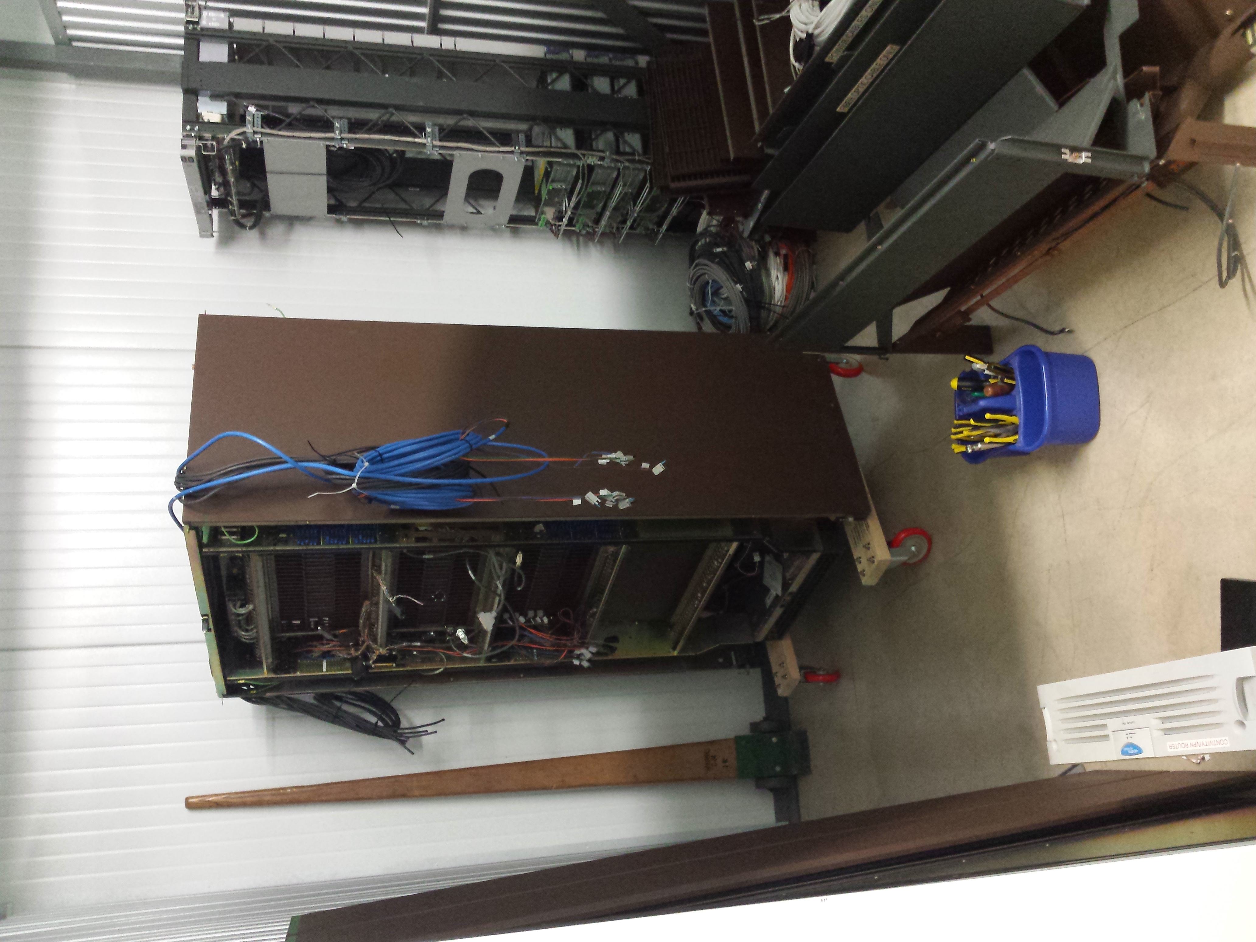 The first thing that needs to be done before anything else can really progress is to organize the equipment into some layout of aisles that will make doing the wiring as reasonable as possible. Following that, I figure I'll start with the XA-core and work my way out to the peripherals to get the switch functioning again.